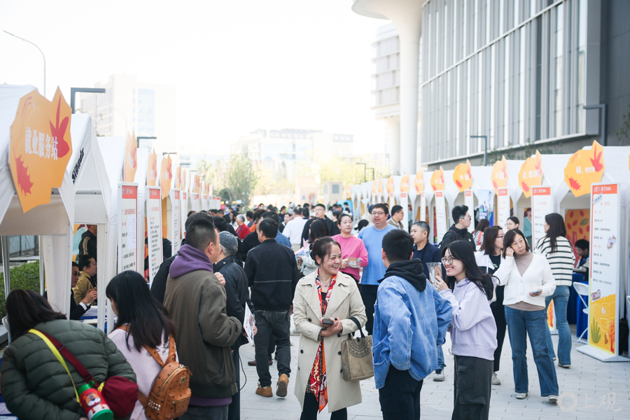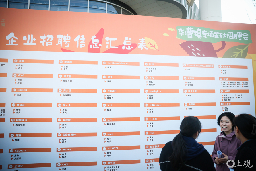 当日,闵行区华漕镇“智链梦思,职启精彩”金秋招聘会在虹桥前湾印象城MEGA举行。