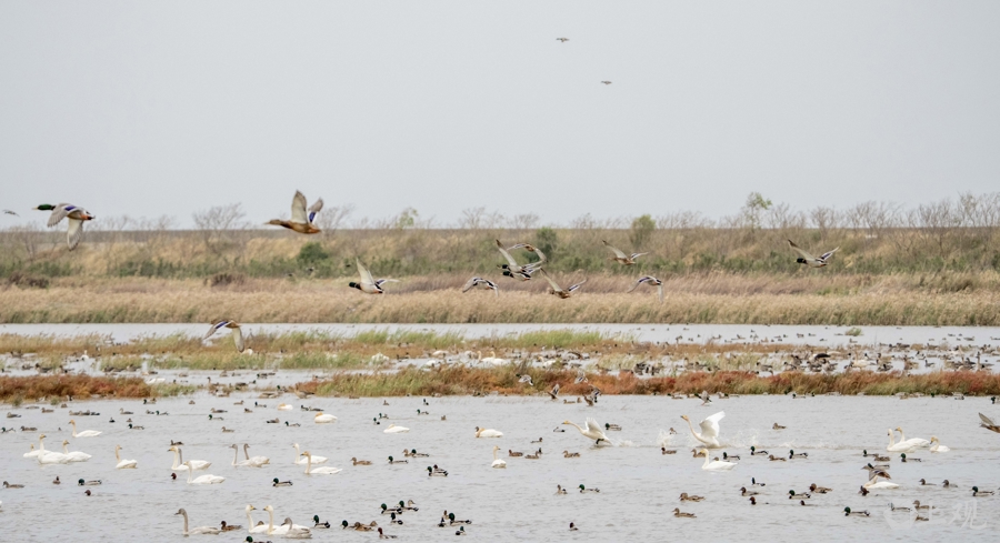 鸬鹚(玄色)等野生鸟群。