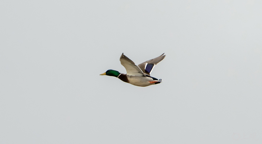 绿头鸭在天外中翱翔。