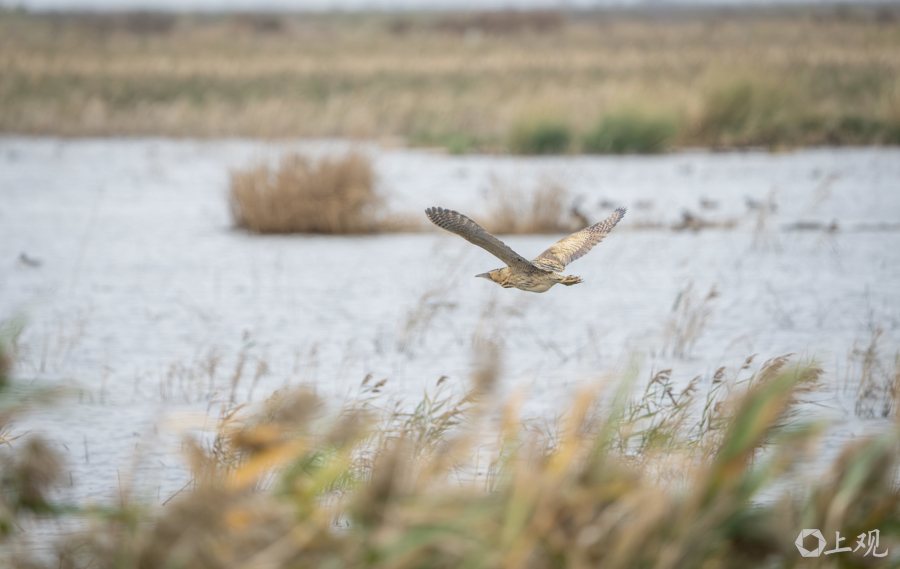 大麻鳽掠过芦苇荡。
