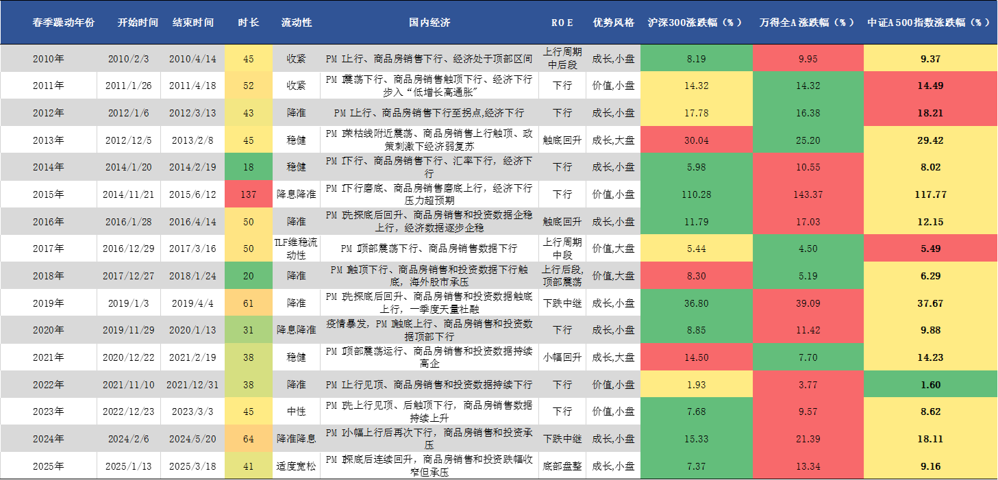 图:2010年来春季躁动及A500发扬复盘